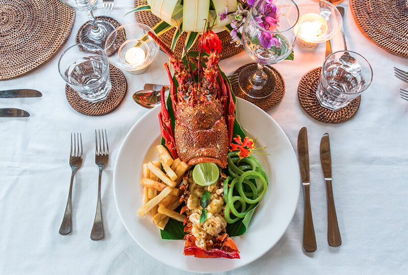 豊富な海の幸、トロピカルフルーツからスウィーツまで。ホテルでも街のレストランでも、そして訪れた村でも、地元の食材を使った心づくしの「ソロモン料理」が楽しめます。もちろん洋食や中華、そして和食党にはメンダナホテル「白梅」が。