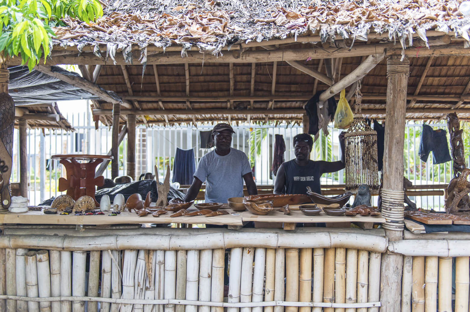 民芸品、木彫り、パレオ(ラバラバ)、地元産のチリ風味ツナ缶(わりと好評です)―――― じつのところ、ソロモン諸島には「マカデミアナッツチョコ」みたいな定番おみやげものがありません! でもそれがけっこう新鮮かも???