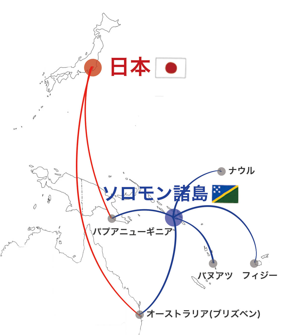 日本からの直行便はありません。ソロモン諸島と直行便で結んでいるのは、